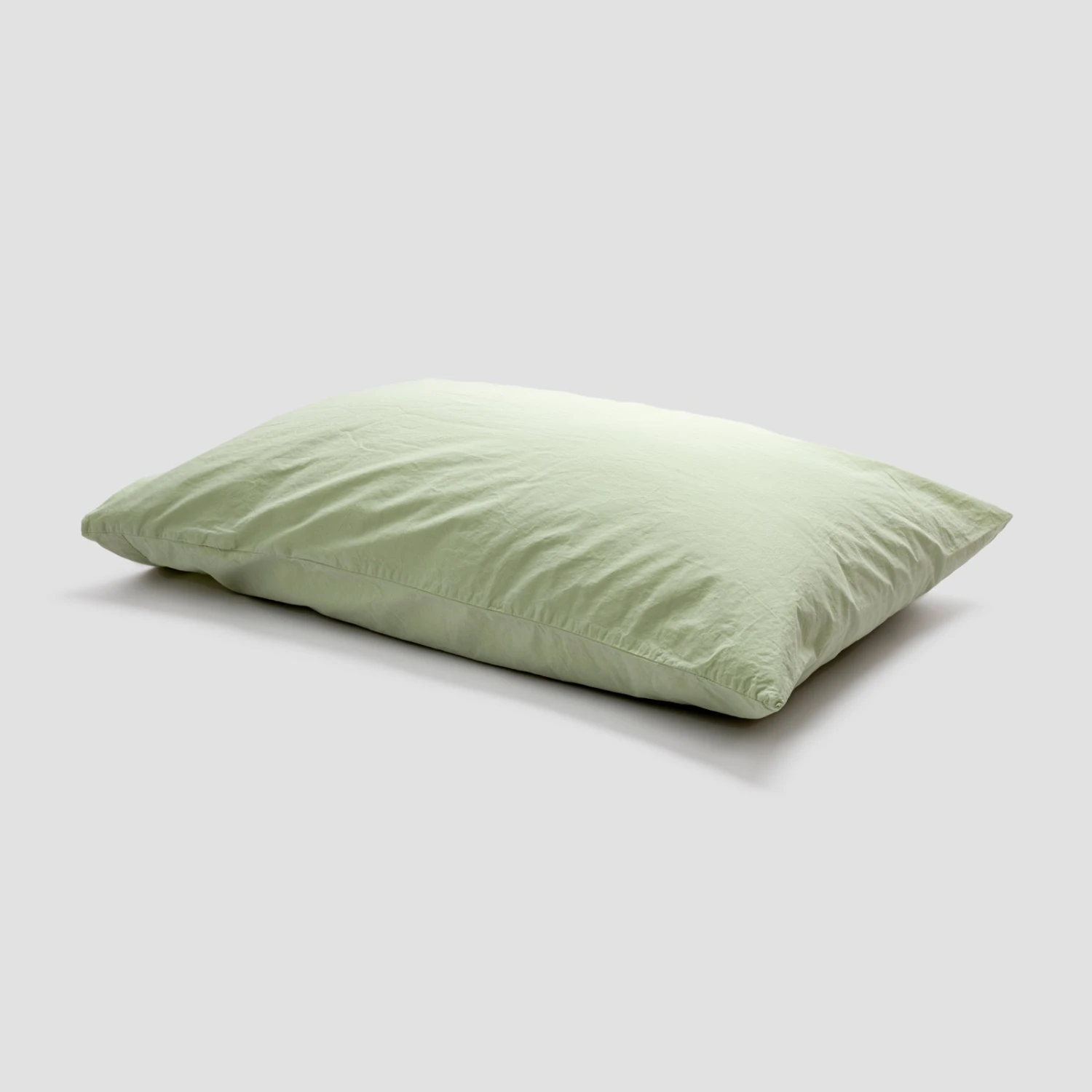 These 100% cotton percale pillowcases are washed for extra softness, while the percale weave allows for a matte finish, high breathability and a relaxed look. Perfect for lovers of no-fuss, high quality cotton bedding. Pictured here in Apple, a delicate green that is designed to complement the rest of our existing washed cotton bedding collection, or simply look great on its own.