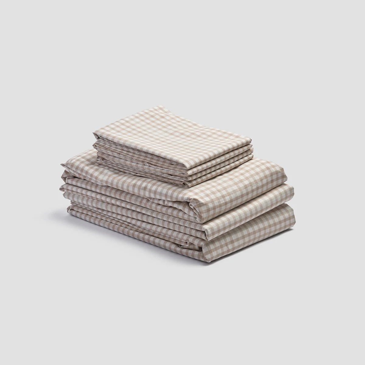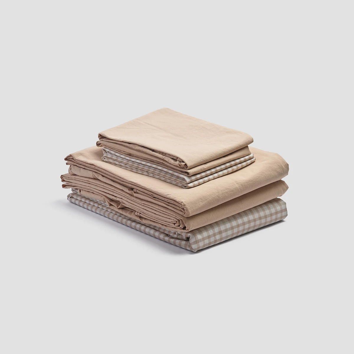 Cafe Au Lait Small Gingham Cotton Bedtime Bundle