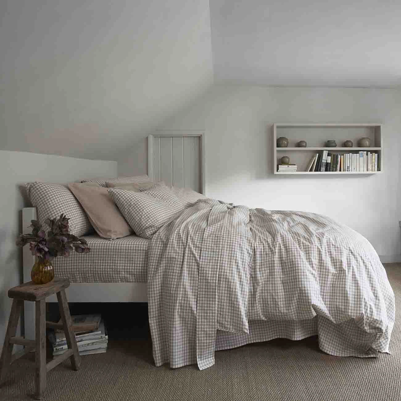 Our most-loved print: Gingham, is now available in crisp percale cotton. Made in Portugal from 100% cotton, our cotton gingham duvet cover will add a charming, country-inspired feel to your bedroom. The percale weave allows for a matte finish, high breathability and relaxed look – perfect for lovers of high quality cotton bedding. Curate a unique bedtime look, sentimental to you and mix and match to your heart’s content. Our Cafe au Lait gingham cotton range looks utterly charming as a mono-print ensemble, but pairs beautifully with plain washed cotton colours: White, Parchment or Cafe au Lait.