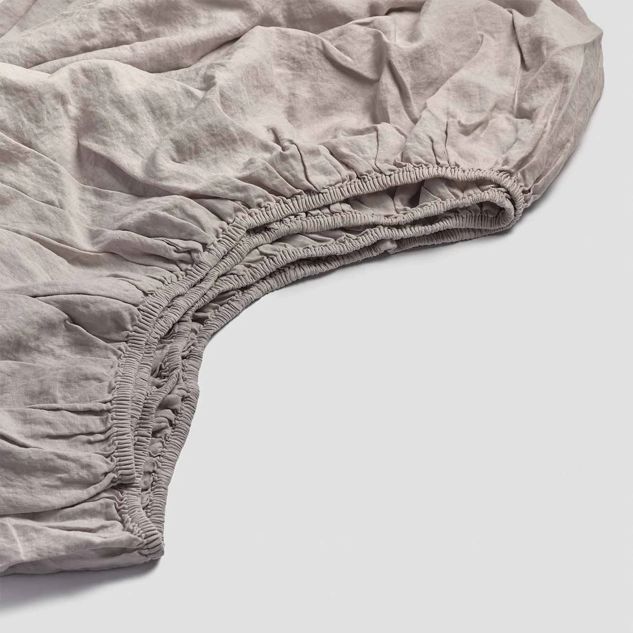 - Dove Gray linen fitted sheet with elasticated edges to make bed making easier.