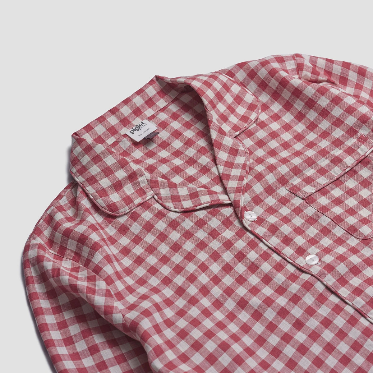 Evoke a feeling of nostalgic charm with our Mineral Red Gingham Linen Pajama Pant Set, made from super soft 100% stonewashed linen. Made for slow weekend mornings and cozy nights in, our gingham linen sleepwear collection is completely natural and thermo-regulating, keeping you snug during winter and cool throughout the summer. The shirt and trouser shape is classic, and being made from lightweight natural linen makes this linen pajama set effortlessly comfortable.