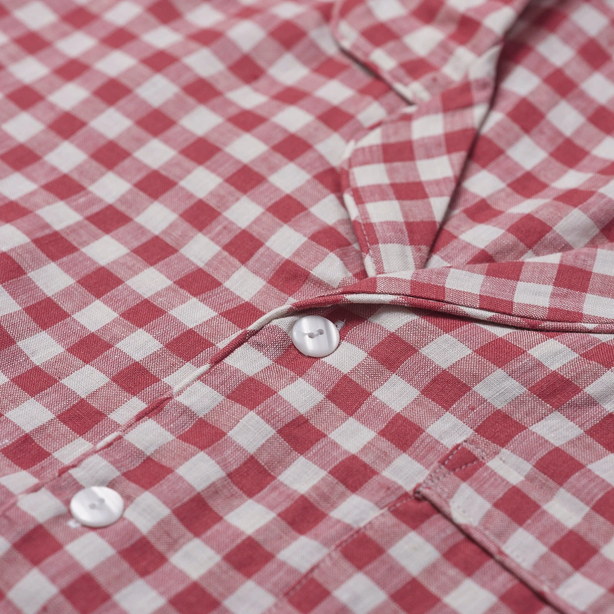 Evoke a feeling of nostalgic charm with our Mineral Red Gingham Linen Pajama Pant Set, made from super soft 100% stonewashed linen. Made for slow weekend mornings and cozy nights in, our gingham linen sleepwear collection is completely natural and thermo-regulating, keeping you snug during winter and cool throughout the summer. The shirt and trouser shape is classic, and being made from lightweight natural linen makes this linen pajama set effortlessly comfortable.