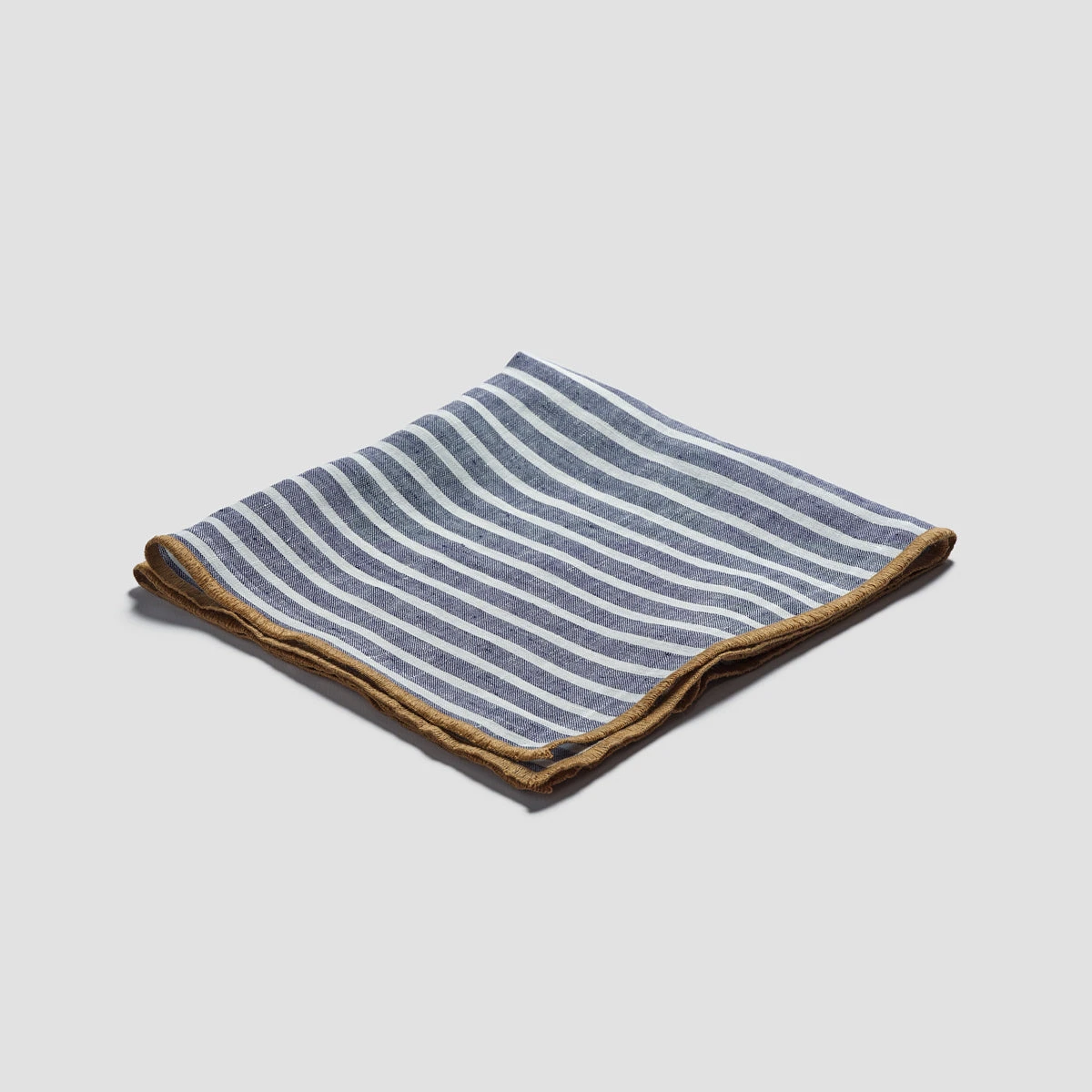 Made in Portugal, our Linen Napkin Set consists of a set of four napkins, made from 100% stonewashed European linen. Shown here in our classic Midnight Stripe linen, embellished with a contrasting overlocked border in a rich shade of Honey Mustard Yellow. Complement your napkin set with the rest of our linen tableware range, including placemats, runners and tablecloths.