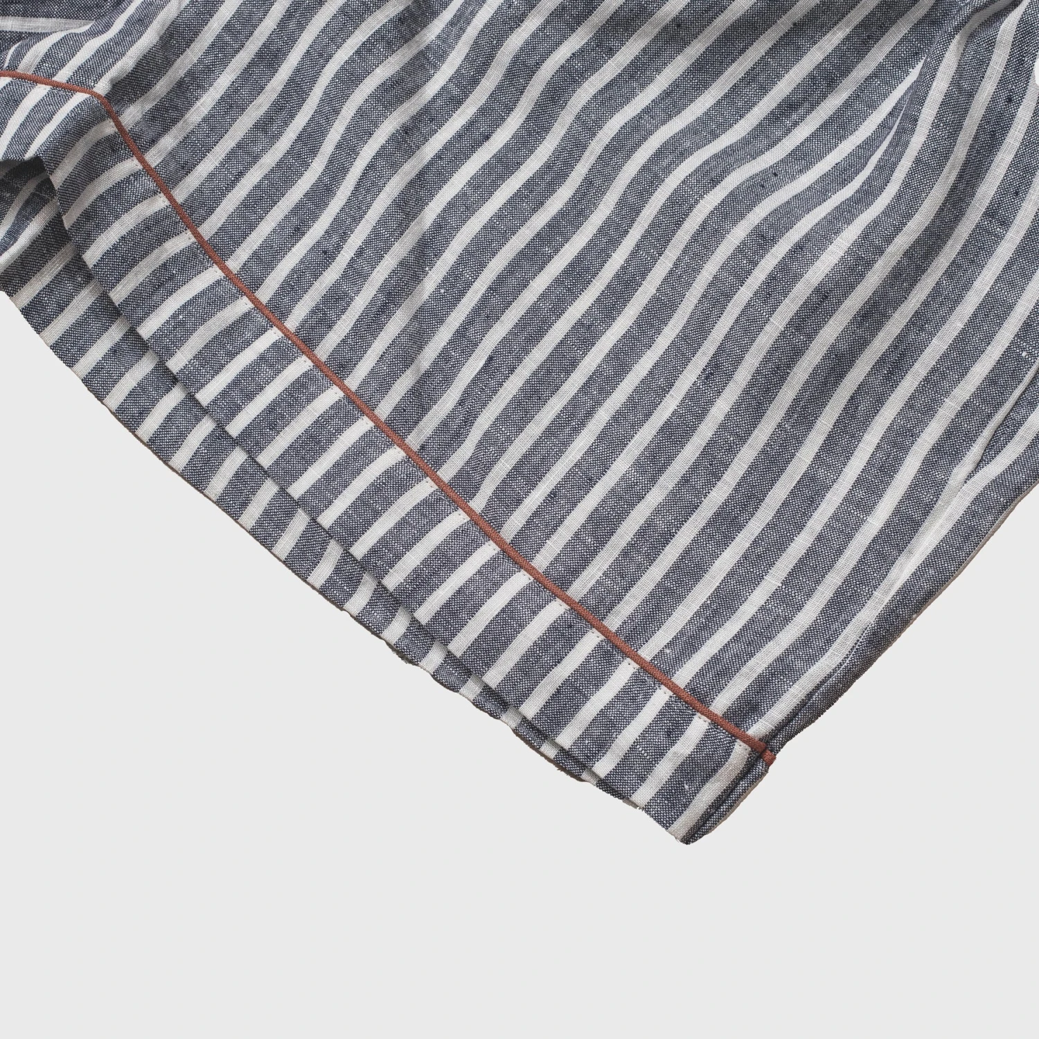 Made for stylish snoozing, our classic Midnight Stripe pajama shorts are made from super soft 100% stonewashed linen. Linen keeps you cozy and warm in the winter and cool in the summer. This lightweight and effortlessly comfortable set features a relaxed fit linen shirt and pair of linen shorts; perfect for quiet days at home and weekend trips away.