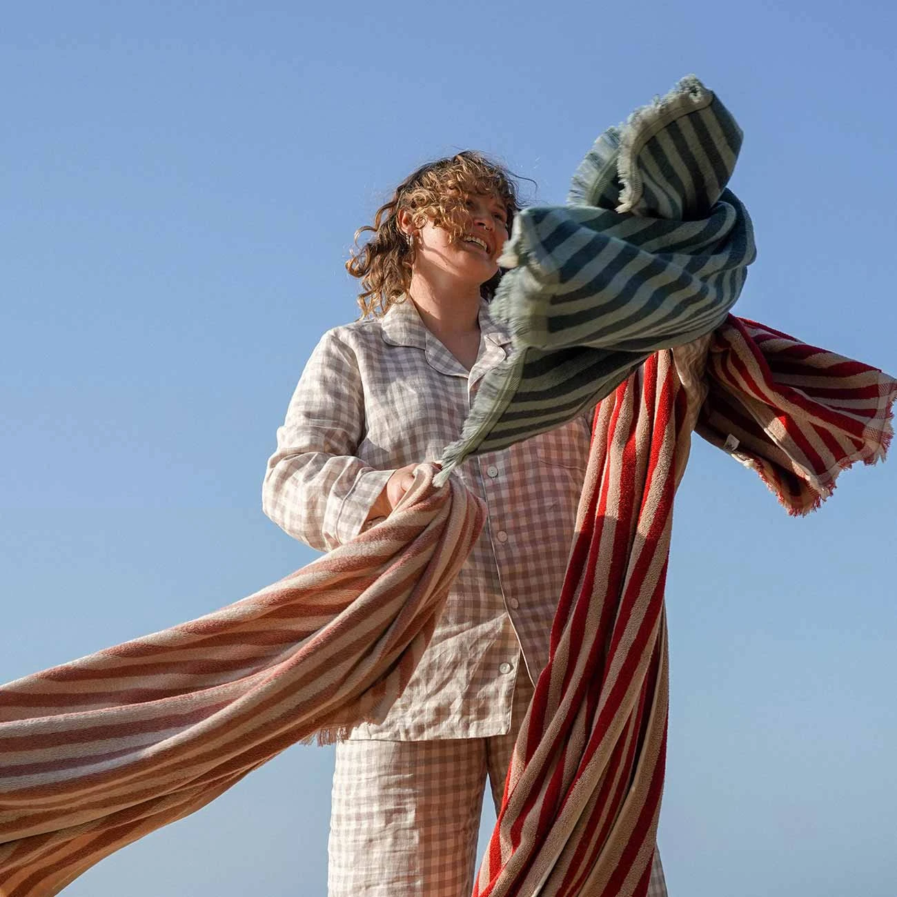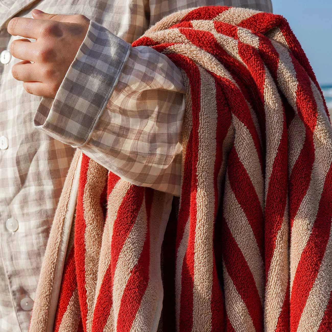 Evoke a sense of nostalgic coastal charm to your bathroom with our Sandstone Red Pembroke Stripe cotton bath sheet. Inspired by vintage deck chairs, our Pembroke Stripe cotton bath sheets are made from sustainably sourced zero-twist cotton and are 600 gsm, making them long-lasting but super soft. From bathroom to beach, envelop yourself in plush, natural comfort with our collection of bold, striped towels.