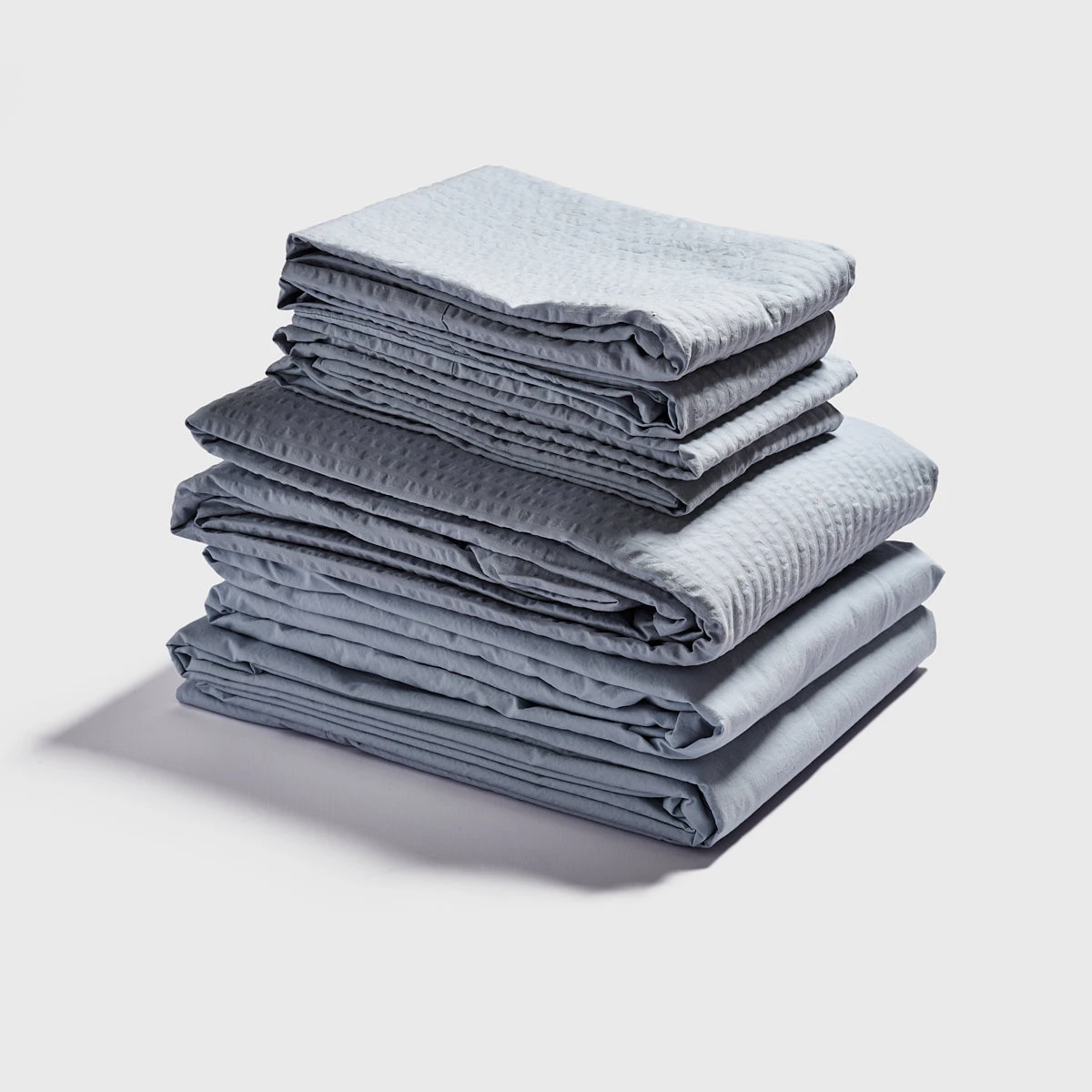 You can purchase your new cotton bedding as a bundle! This includes a duvet cover, flat or fitted sheet and a pair of pillowcases, with the option to add more on if you wish, in the size of your choice. Match your Sky Blue Seersucker Cotton Duvet Cover with a sheet and pillowcases in the same shade for a colour block effect, or in our bright and neutral Cloud Cream.