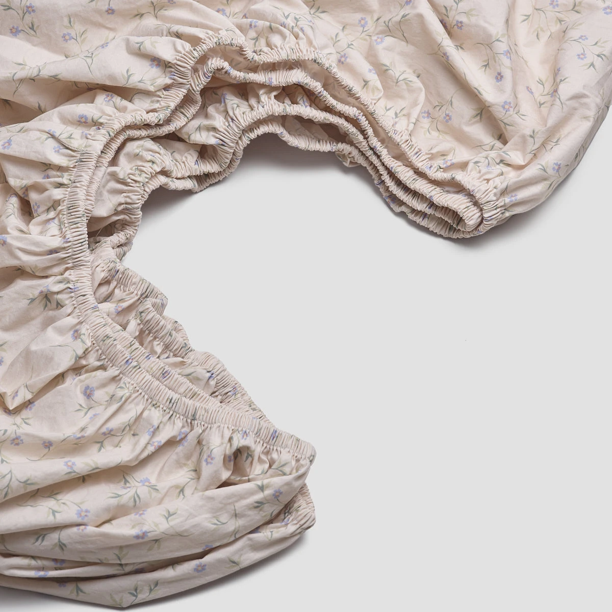 Meet our first floral cotton bedding collection, inspired by the romantic charm of English country houses. Working with The Design Library – the worlds largest collection of documentary fabrics, paintings, prints and patterns – we sourced an archival floral print and updated it for a modern setting, resulting in our new Spring Sprig bedding. Featuring a vintage-inspired floral motif and made from soft and breathable washed percale cotton, our Spring Sprig Printed Cotton Fitted Sheet is designed to be mixed and matched with colors from our washed cotton collection, pairing particularly well with Parchment, Buttermilk and Pear.