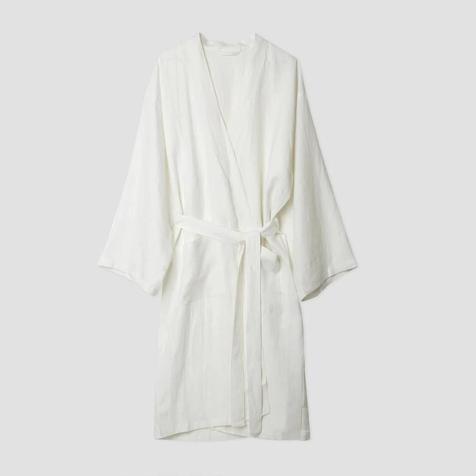 Made for self-care days, our White robe is made from 100% stonewashed linen which is slightly thicker than the linen used for our pajamas for extra warmth and cover. Linen keeps you cozy and warm in the winter and cool in the summer. Our linen robes are the perfect addition to your morning routine, just pop it on as soon as you get out of the shower or whilst you’re having your morning coffee.