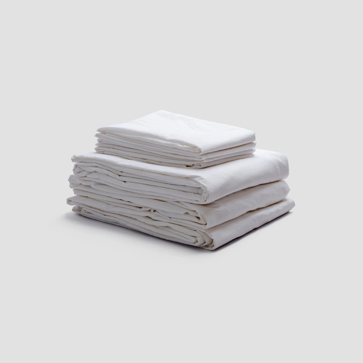 Treat yourself (and your bed) to one of our washed cotton bedtime bundles, containing everything you need for a cosy night’s sleep. Our White washed cotton bedtime bundle includes a duvet cover, flat or fitted sheet and a pair of pillowcases, with the option to add more on if you wish.